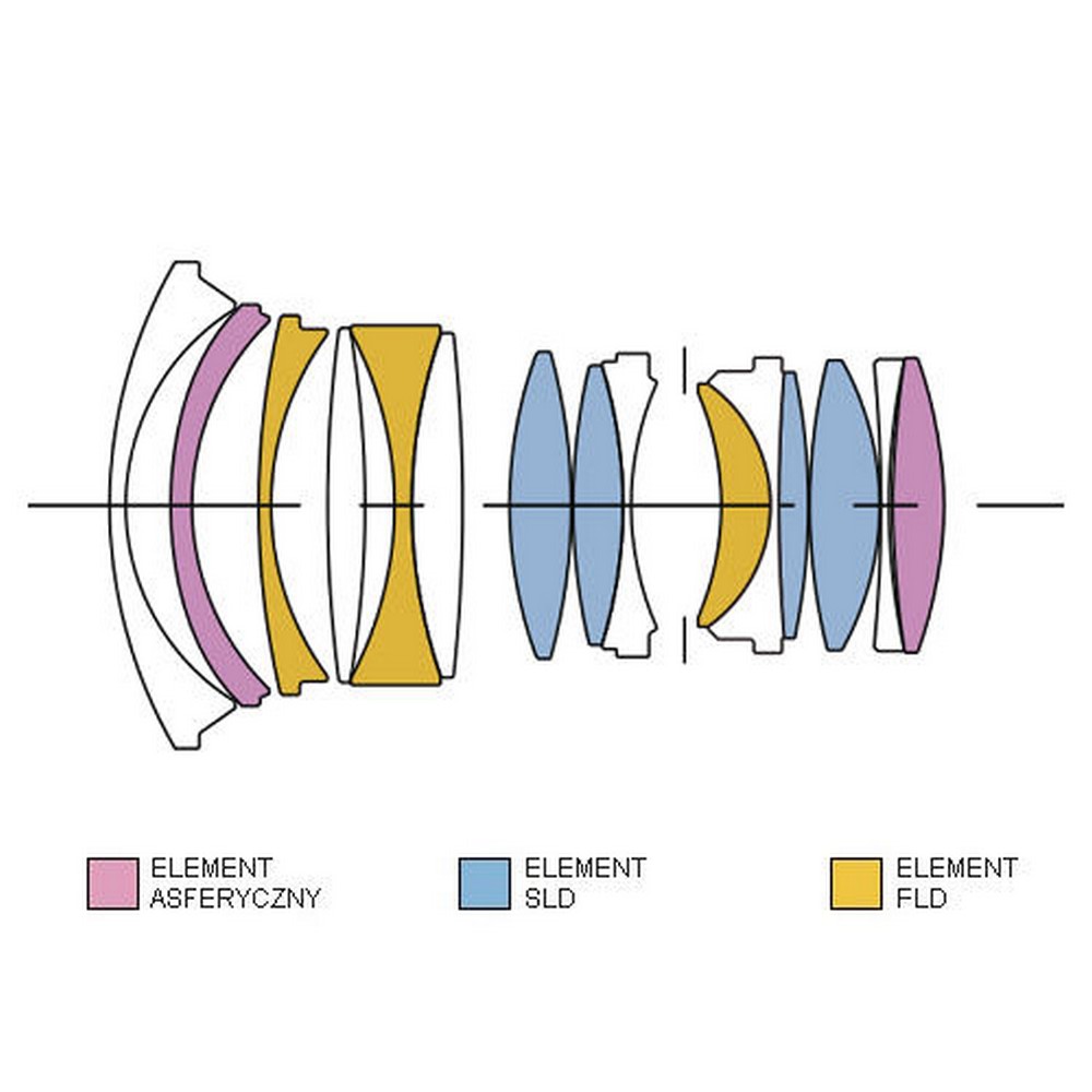 Zaawansowany układ 15 soczewek  ułozonych w 11 grupach  gwarantuje  pełną ostrość obrazu już od przysłony F1,4. Aż 3 soczewki wykonano ze specjalnych szkieł  FLD  oraz 4 soczewki z SLD. Każda soczewka jest pokryta warstwami antyrefleksyjnymi likwidującymi bliki i flary, dzięki czemu obiektyw zachowa odpowedni kontrast nawet przy fotografowaniu pod słońce.