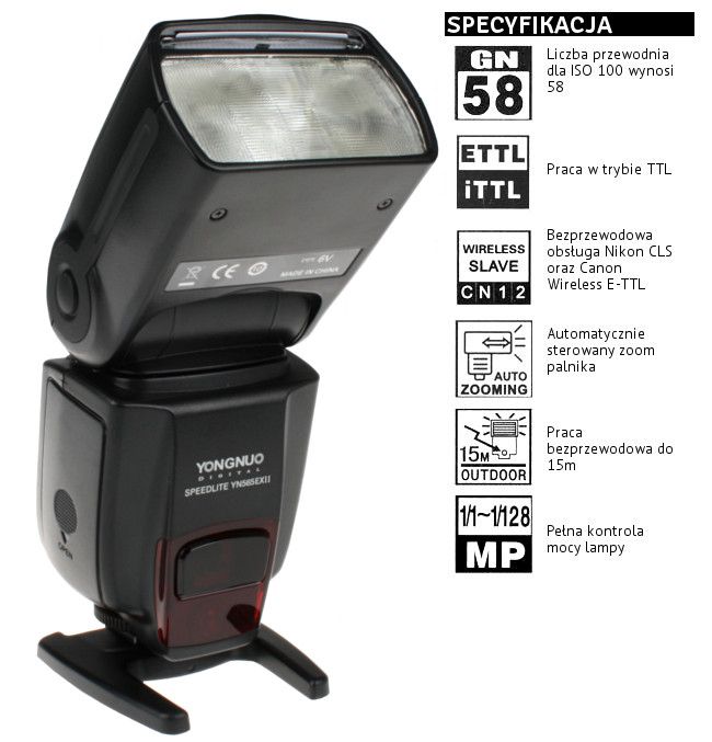 • Tryby pracy: E-TTL / E-TTLII, Manual, MULTI,